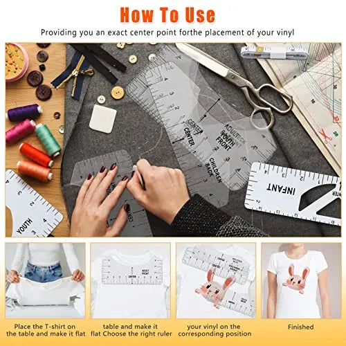 12 Piezas de herramientas de alineación de camisetas, guía de regla transparente con 1 cinta métrica suave de 150 cm para suministros de diseño de tela