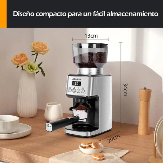 Aigostar Molinillo de Café Eléctrico con 52 Ajustes de Molido Molinillo Café de Cono