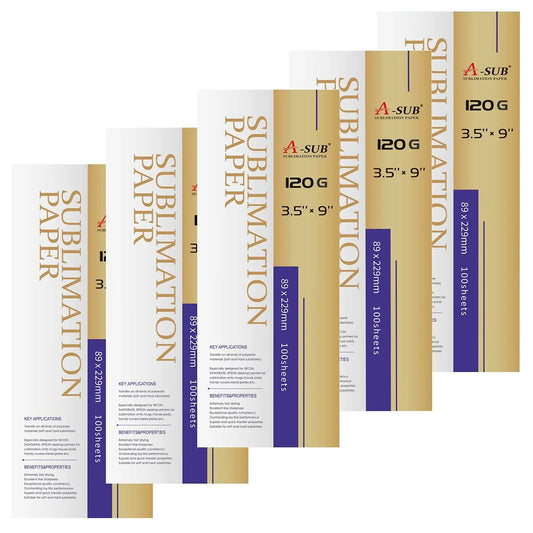 A-SUB Papel de Sublimación para Taza tamaño 120 g/m², 3.5x9'' 89x229 mm 500 Hojas, Compatible con Impresoras de Sublimación Epson, Sawgrass, Ricoh, Brother (500 Hojas)