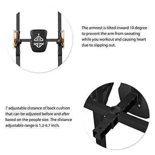Humanized design: The armrest on this dip station is angled 10 degrees inward to prevent your arm from slipping while you work out.