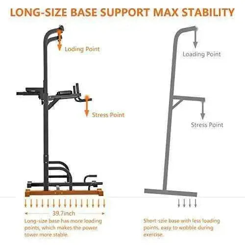 Details: Our Power Tower is extremely versatile exercise equipment for bodyweight exercises at home, gym or office. With this dip station, you can do exercises like Pull-ups, Chin-ups, Pull-ups, Push-ups, Vertical Knee Raises and much more.