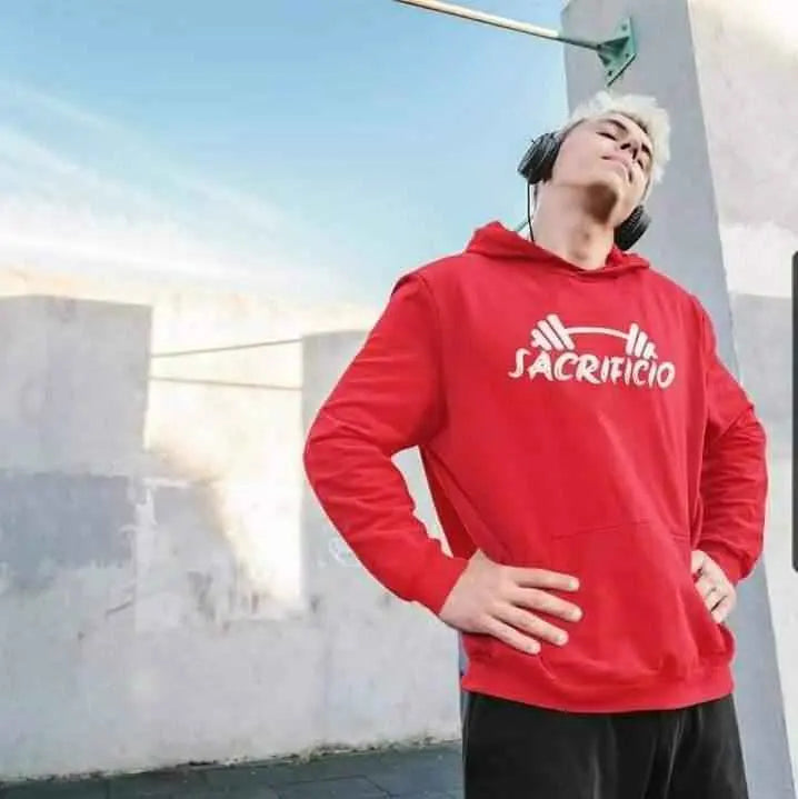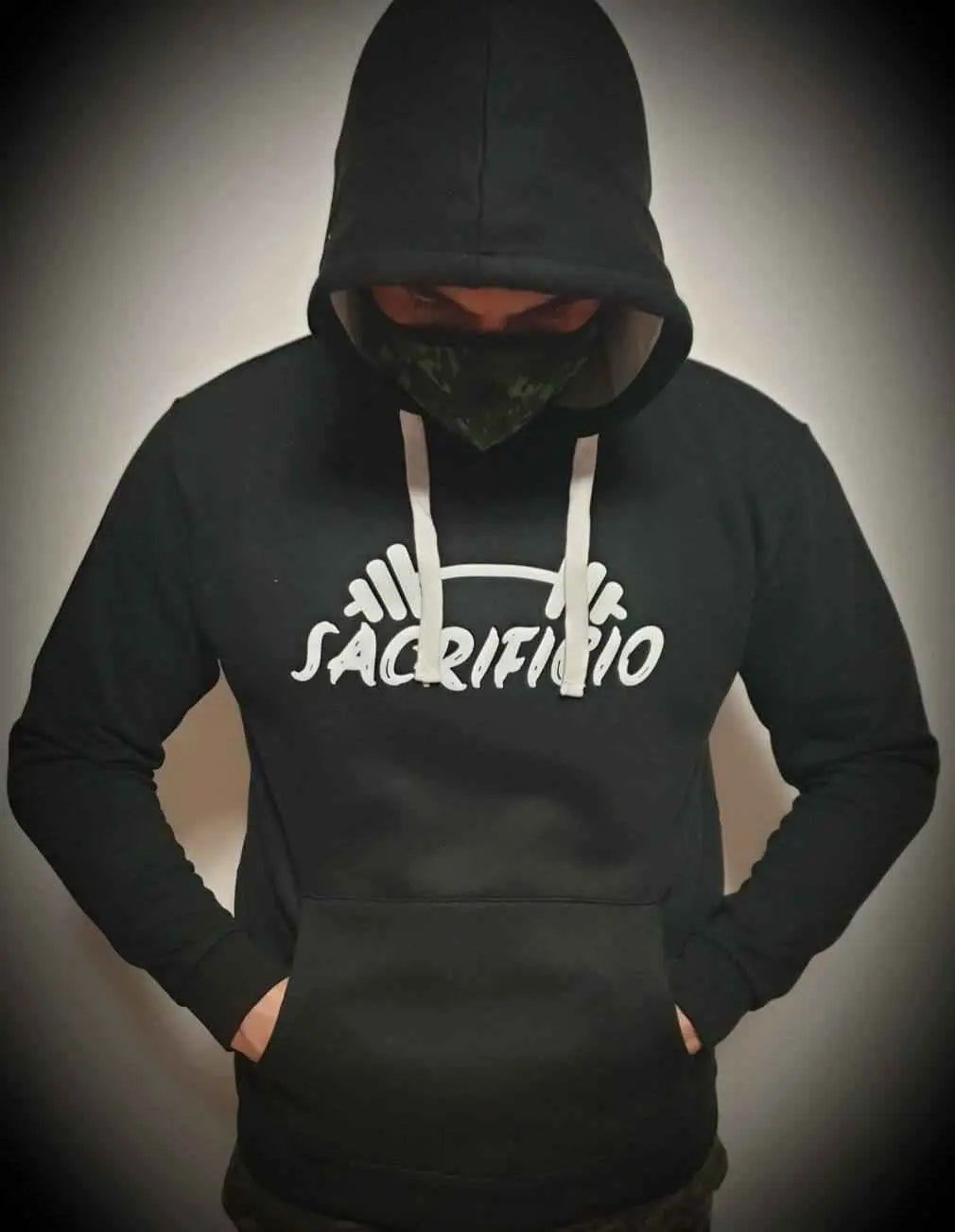 SACRIFICIO official sweatshirt, with drawstring hood and marsupial pocket - Available in 2 colors BLACK / RED and various sizes - GET YOURS!