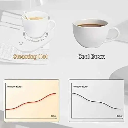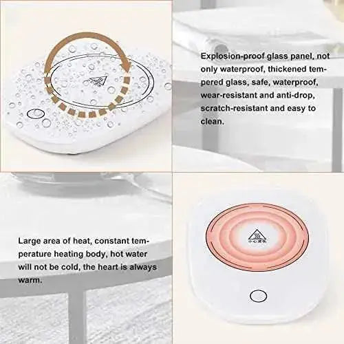 - Amplia gama de aplicaciones: El calienta azas es adecuado para calentar y mantener caliente té, café, cacao, leche y otras bebidas. También es adecuado para varios utensilios, como tazas de vidrio, tazas de acero inoxidable, tazas de cerámica y otras tazas de fondo plano. También se puede utilizar en casa o en la oficina.