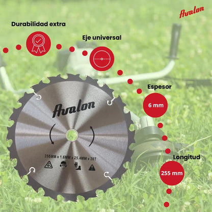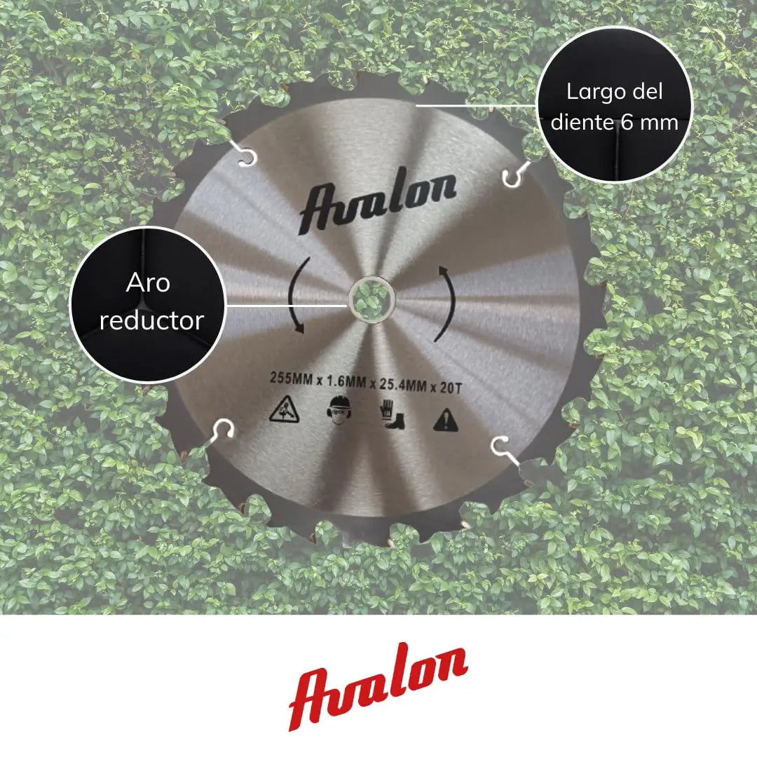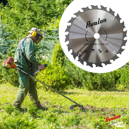 Avalon - Disco de 20 Dientes Antirrebote para Desbrozadora, Cuchilla Especial para Tallos Leñosos 255 x 1,6 mm, Longitud del Diente de widia 6 mm
