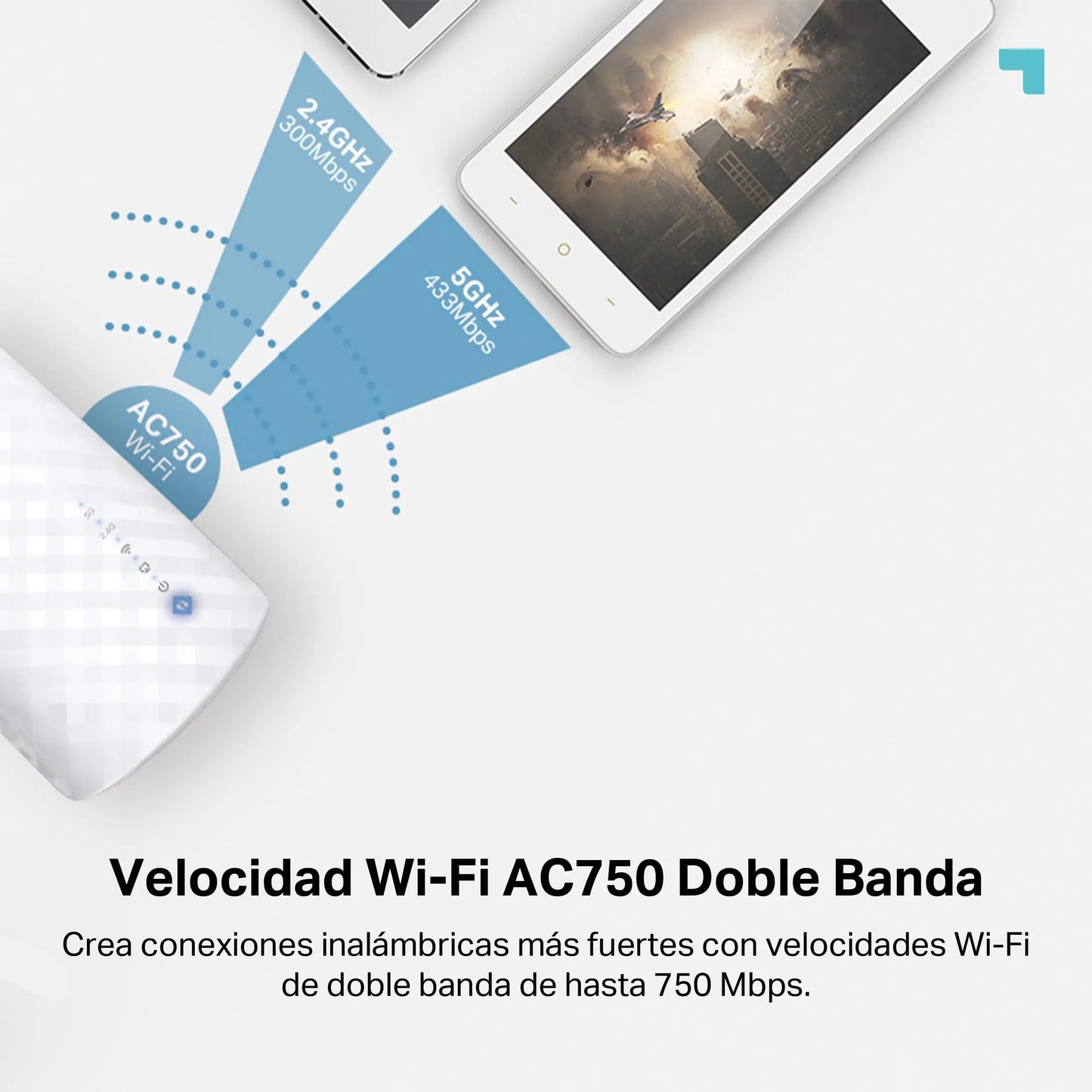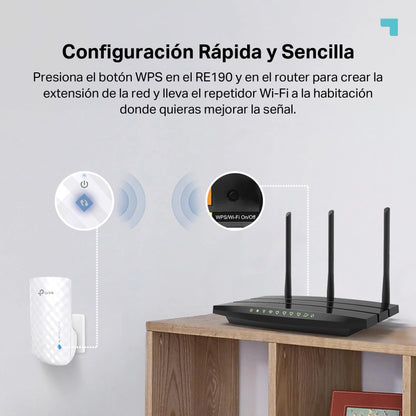 TP-Link RE190 AC750 - Amplificador Señal WiFi, 433Mbps en 5GHz 300Mbps en 2.4GHz con EU Enchufe, WPS